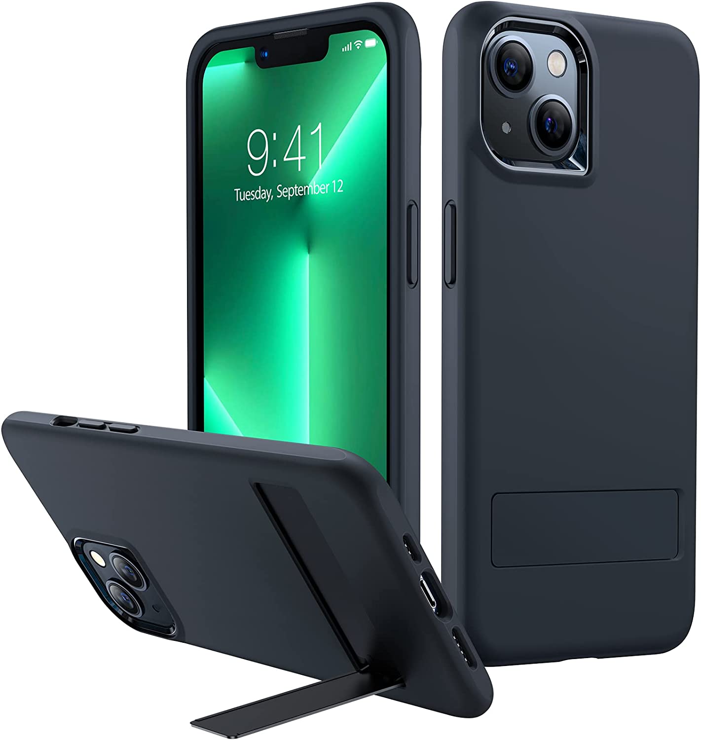 Este estuche brinda protección de grado militar contra caídas de hasta 10 pies, gracias a una parte posterior de tres capas a prueba de golpes. El interior del estuche cuenta con un suave forro de microfibra antirrayas que garantiza que su iPhone 13 permanezca nuevo a pesar del uso continuo. El estuche también tiene un soporte plegable para sus sesiones de YouTube, Instagram, FaceTime y Netflix, que permanece apartado cuando no está en uso. El soporte de aleación de aluminio funciona tanto en orientación horizontal como vertical. El diseño del estuche tiene una sensación sedosa de primera calidad, lo que hace que sea un placer usarlo y al mismo tiempo mantiene su teléfono protegido del polvo.