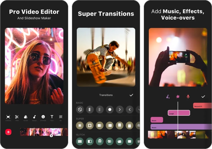 Como muchos de su tipo, te permite redactar vídeos y editarlos más tarde. A pesar de ser gratuita, la aplicación presenta muchas funcionalidades, lo que facilita la edición.