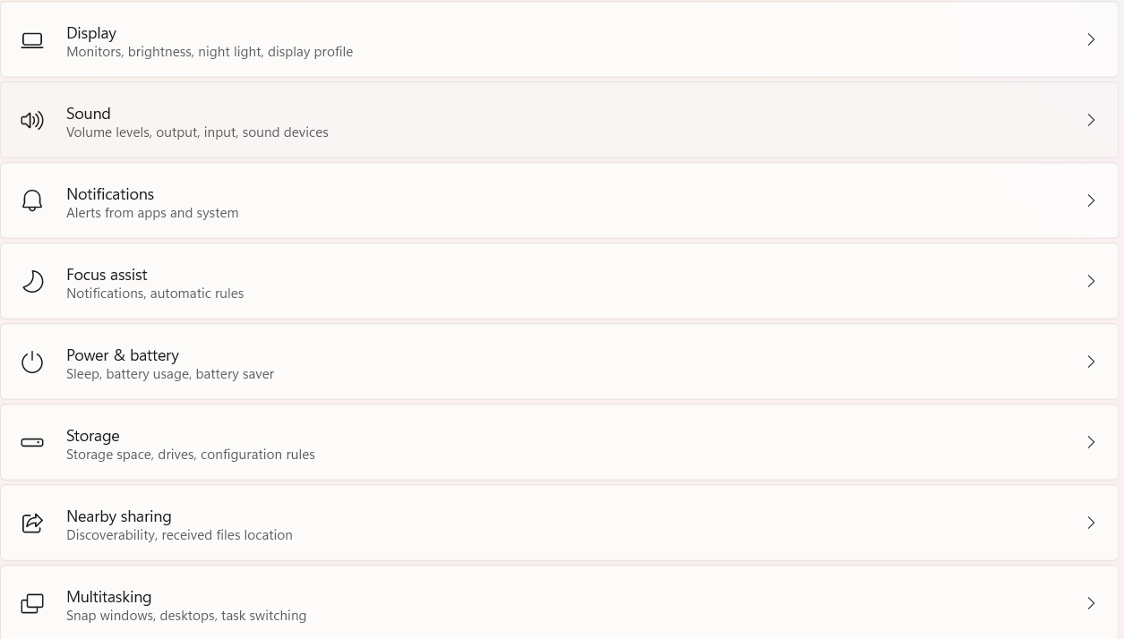 2. A continuación, haga clic en elSistemapestaña presente a la izquierda. Desde allí, seleccione elSonidoopción.
