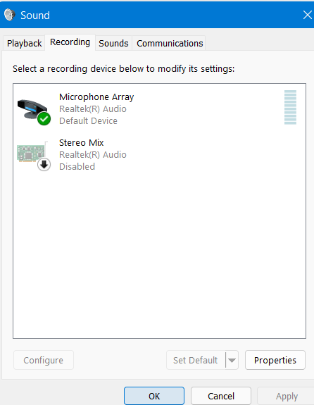 - Elija el dispositivo de grabación que desea configurar como predeterminado y luego presioneEstablecer predeterminado