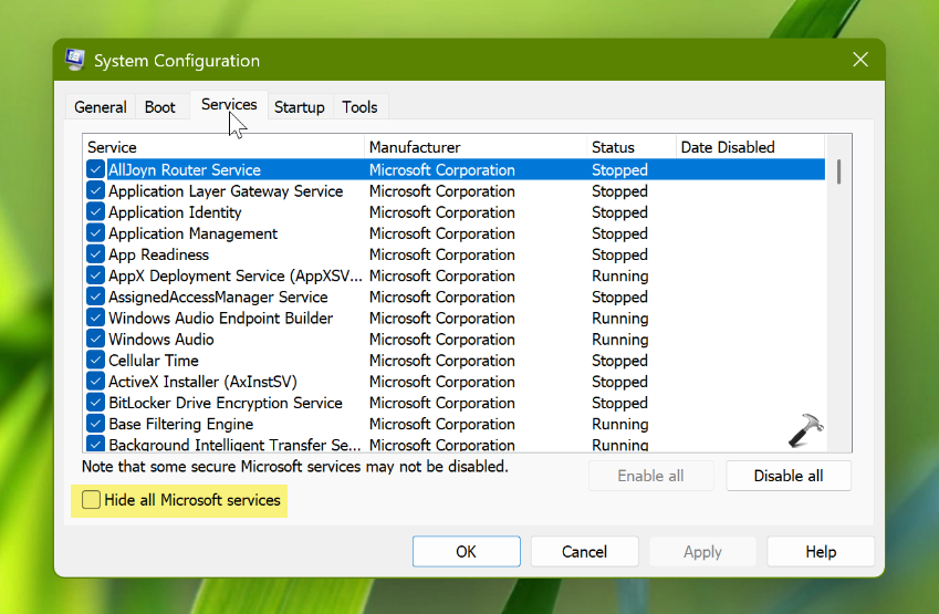 3. Luego, marque el "Ocultar todos los servicios de Microsoft”cuadro para ver solo los servicios de terceros.