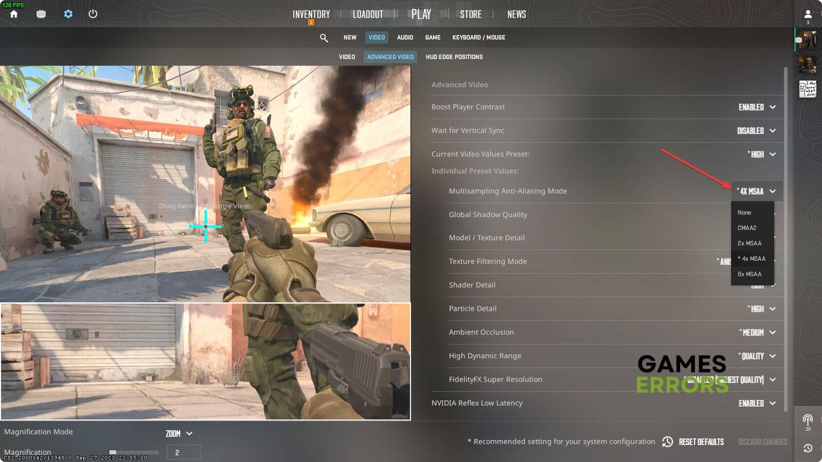 - Configuraciones incorrectas:Si la configuración que estás utilizando no es la ideal, terminarás obteniendo FPS muy pobres en Counter-Strike 2.