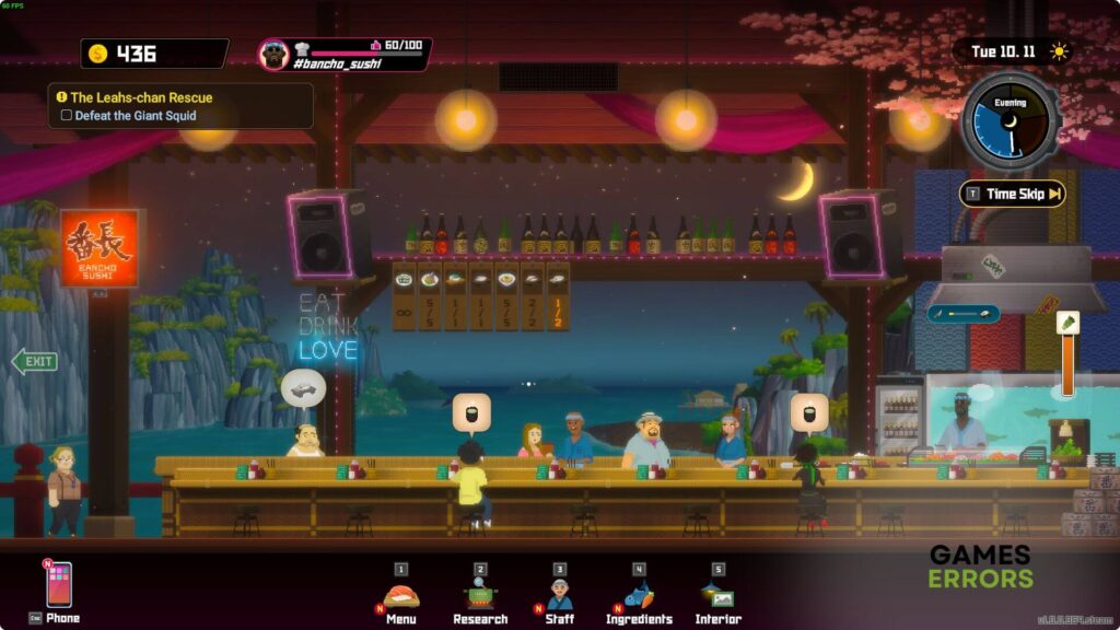 En Dave the Diver, la gestión del tiempo es algo importante. Una vez que comience a progresar y el restaurante comience a recibir más invitados, a menudo le resultará difícil atenderlos a tiempo. Si no lo hace, los invitados se sentirán decepcionados y abandonarán el restaurante. Por lo tanto, trate siempre de atender a los que piden comida o bebida antes, mientras vigila el estado mental de los demás.