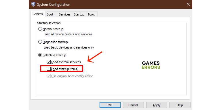 - En la pestaña General desmarqueCargar elementos de inicio.