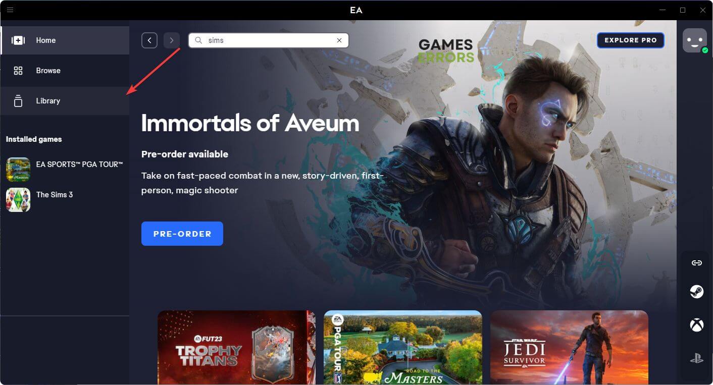 - Abre elaplicación EAo el cliente del juego que estás utilizando.