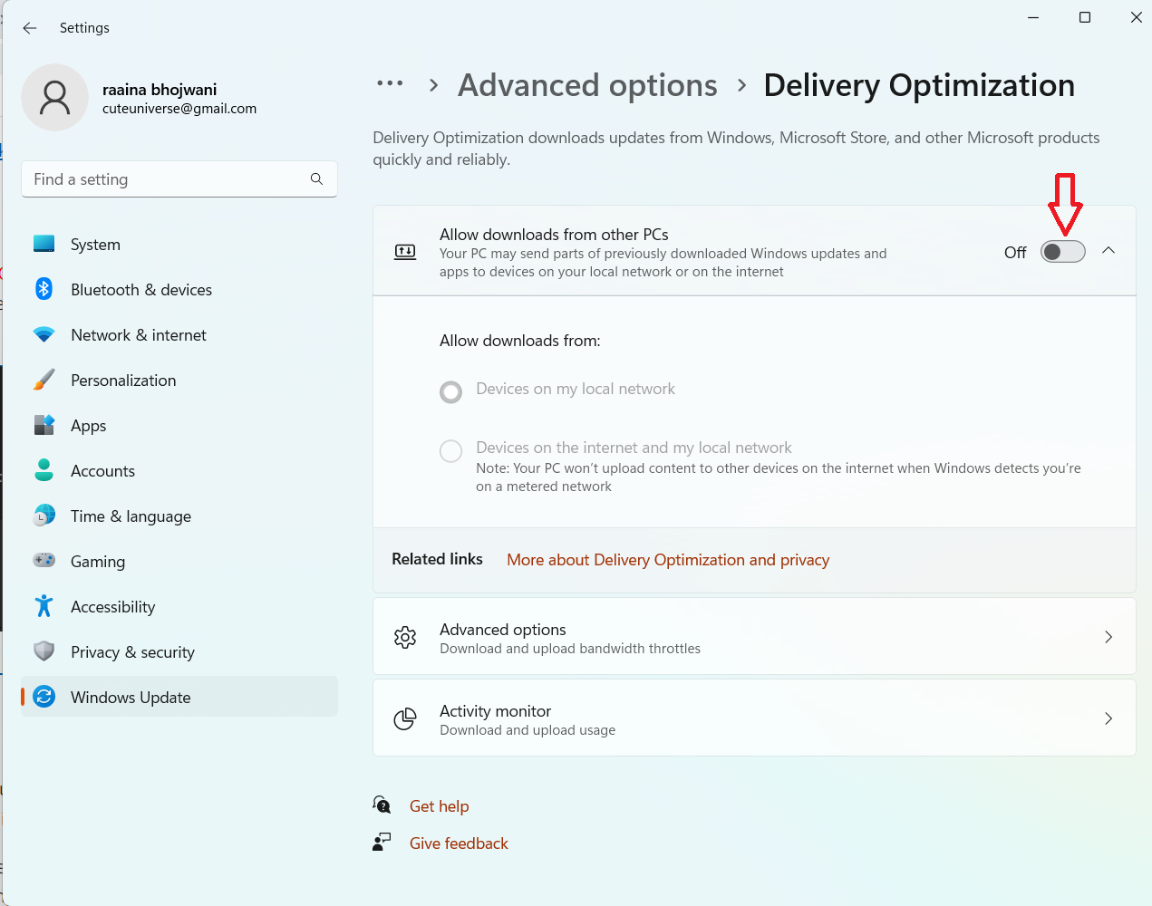 Solución 1: deshabilite las actualizaciones de más de un lugar para corregir el uso del 100% de la CPU en Windows 11