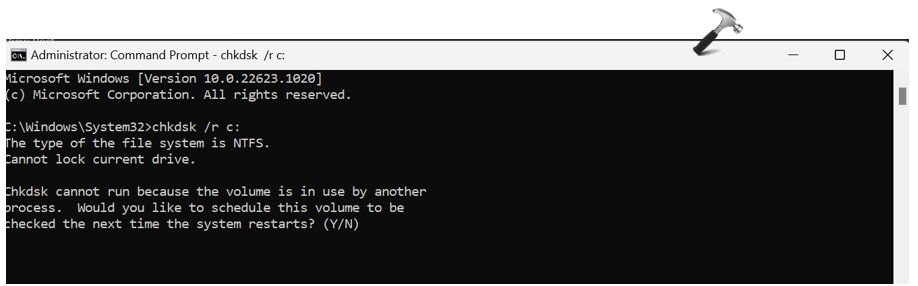 2. Para realizar una verificación del disco, copie y pegue el siguiente comando: