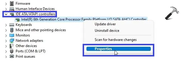 2. Ahora, expanda “Controladores IDE ATA/ATAPI” y seleccione Propiedades.