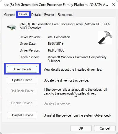 3. En la pestaña Controlador, haga clic en "Detalles del controlador".