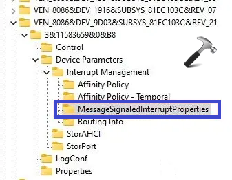 6. Vaya a Parámetros del dispositivo => Gestión de interrupciones => MessageSignaledInterruptProperties.