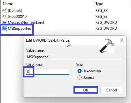 7. En el panel derecho, haga doble clic en "MSISupported".