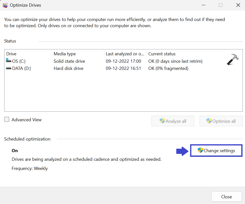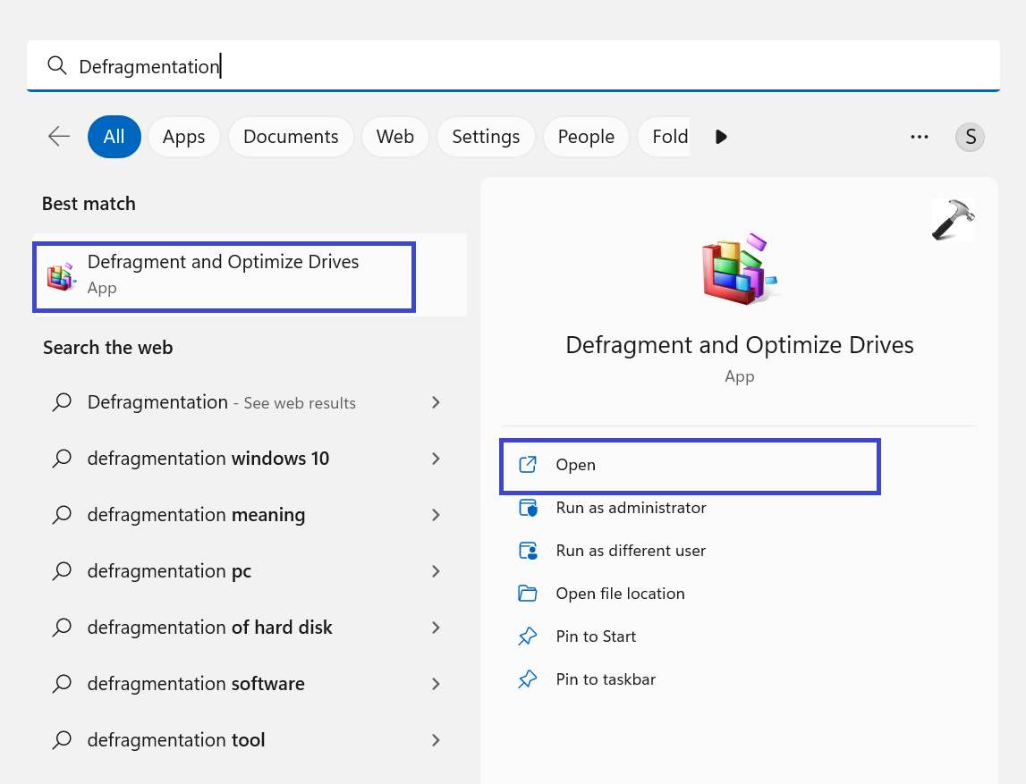 1. Presione la tecla de Windows y busque "Desfragmentación". Ábrelo.