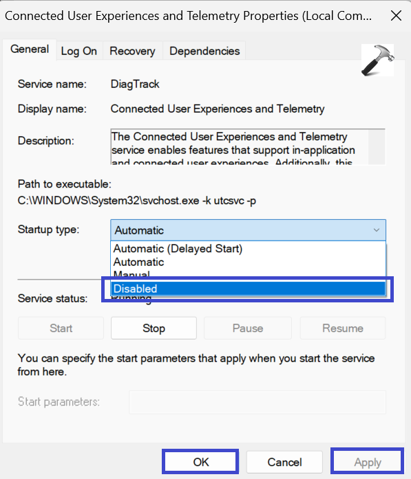Telemetría y experiencia de usuario conectado es un servicio que se ejecuta bajo svchost.exe, que es responsable del uso elevado del disco en Windows 11.