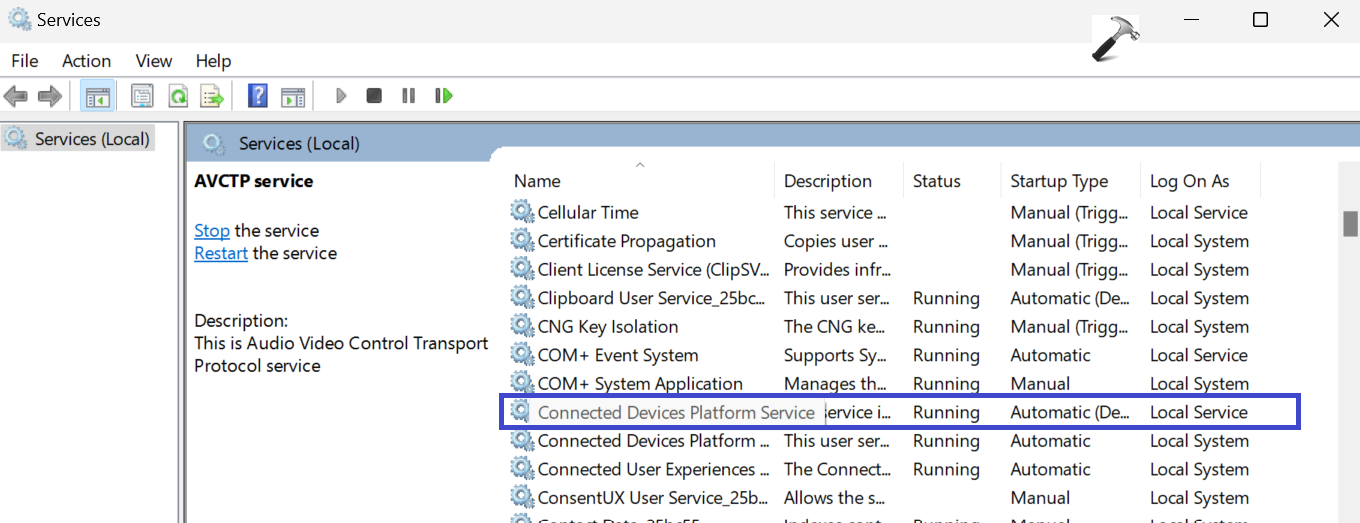 4. Además, haga doble clic en "Servicio de plataforma de dispositivos conectados" y seleccione "Desactivado".