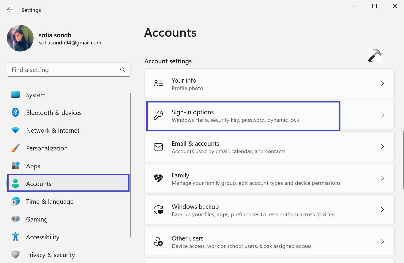 1. Abra la aplicación Configuración y vaya a Cuentas.