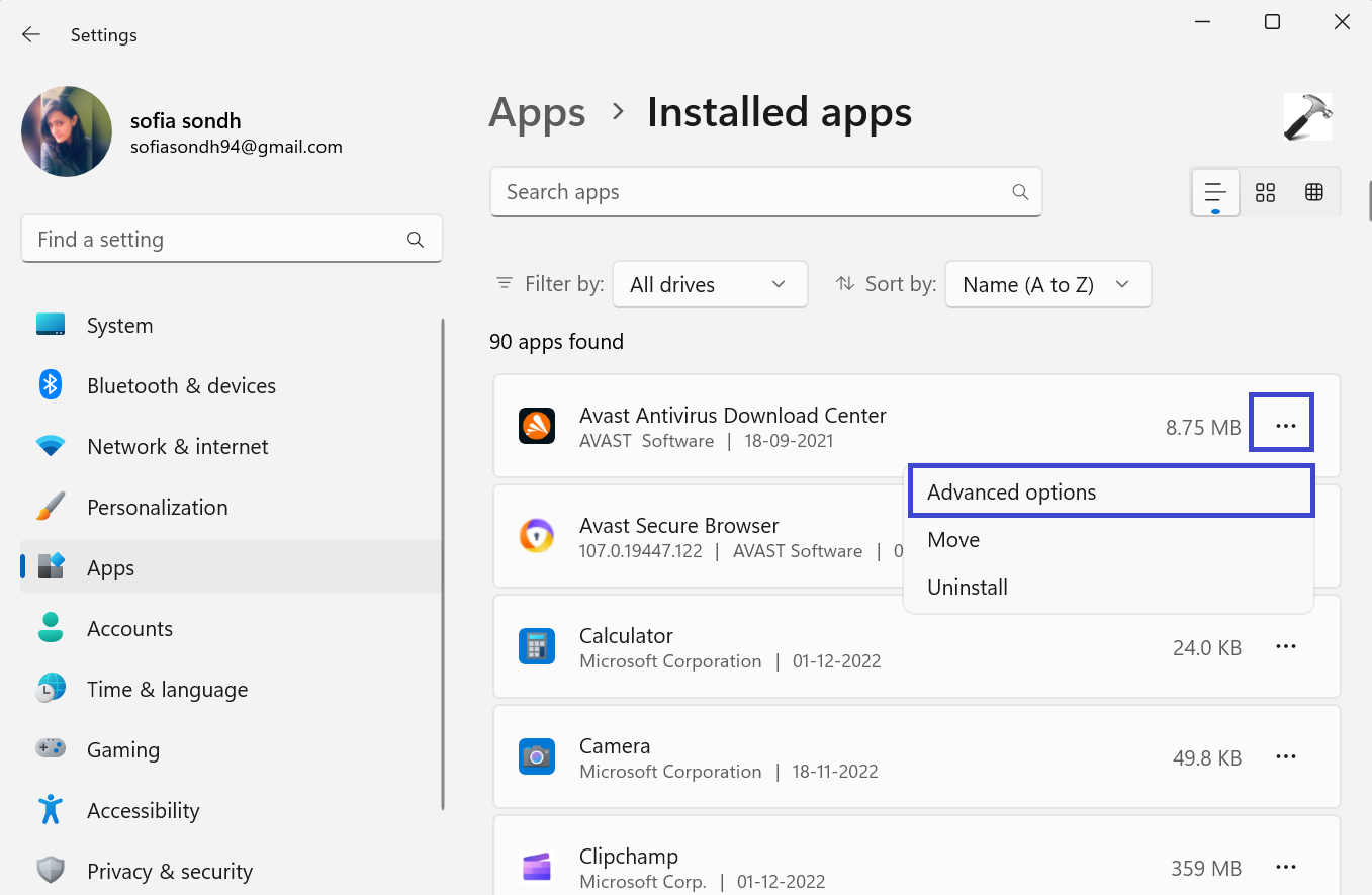 5. Ahora, haga clic en el menú de tres puntos y seleccione "Opciones avanzadas".