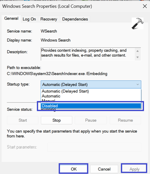 Deshabilitar la búsqueda de Windows también puede afectar la búsqueda de archivos y carpetas en su PC. Si no desea desactivarlo, vaya a la siguiente solución. Siga los pasos a continuación para desactivar la búsqueda de Windows: