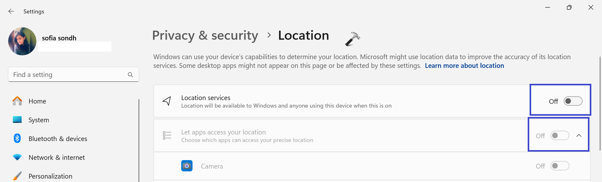 Además, desactive la palanca junto a "Permitir que las aplicaciones accedan a tu ubicación" opción.