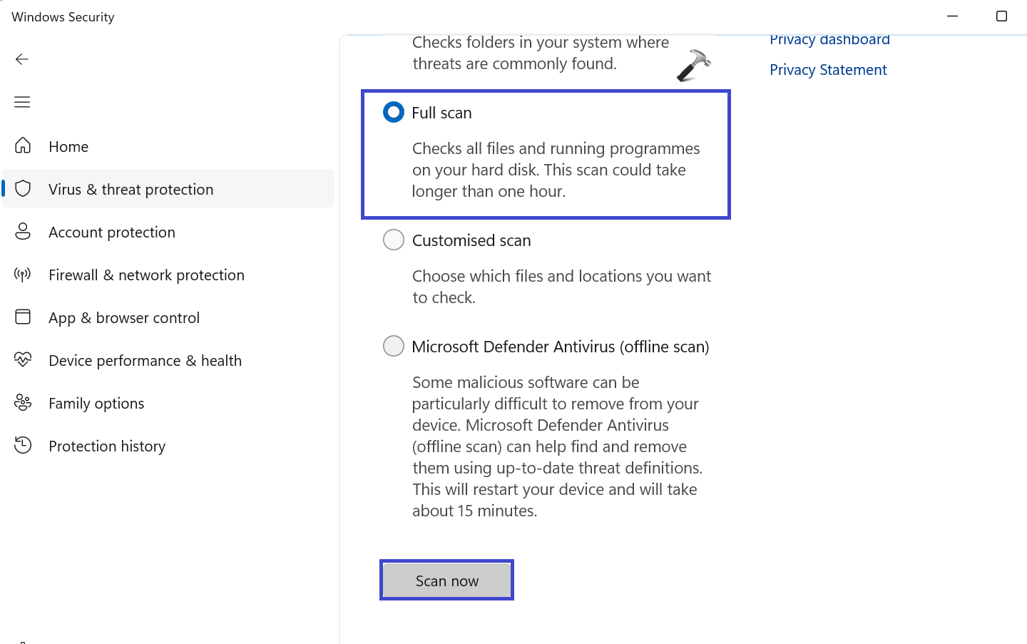 Estos son los pasos para ejecutar un análisis de virus en Windows 11: