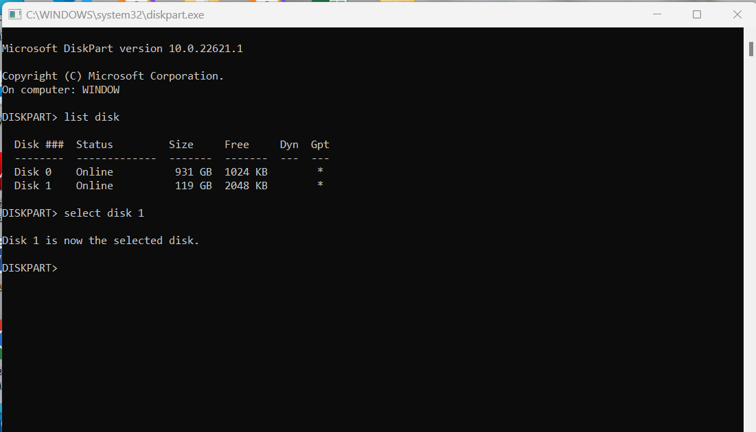 Paso 2: Ahora tienes que escribir el comandoparte del discoy presiona Enter. Verá una nueva ventana de comando.