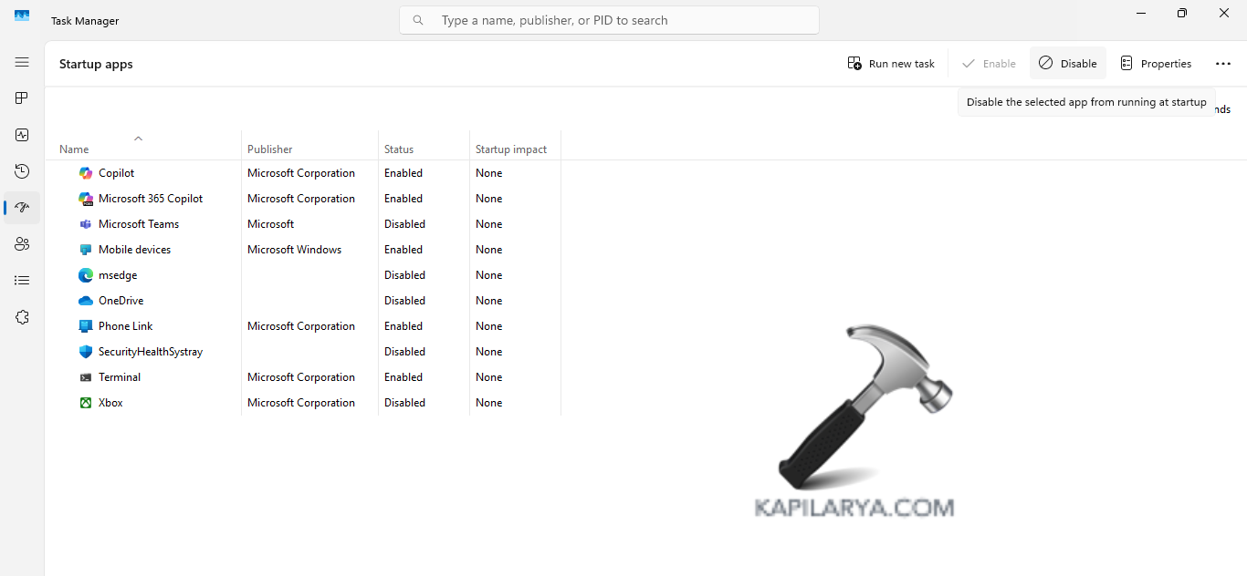 Paso 3-Ahora, para detener la ejecución de un programa al inicio, primero haga clic en él. Luego, seleccione el botón Desactivar.