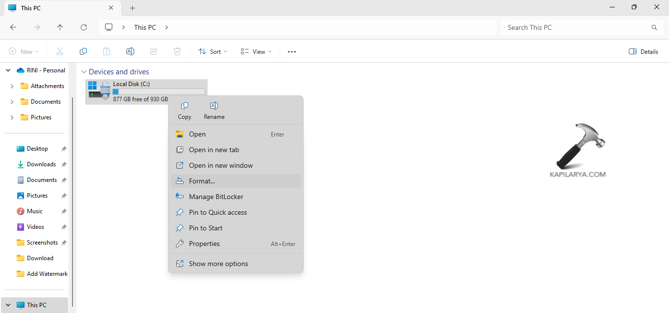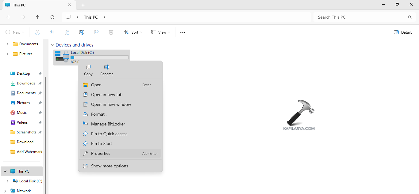 Paso 1-Principalmente, abra Esta PC. Luego haga clic derecho en una unidad.
