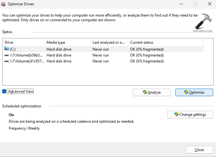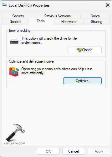 Paso 2-Ahora, seleccione Propiedades > Herramientas > Optimizar > Optimizar. Esto mostrará el estado de las unidades.