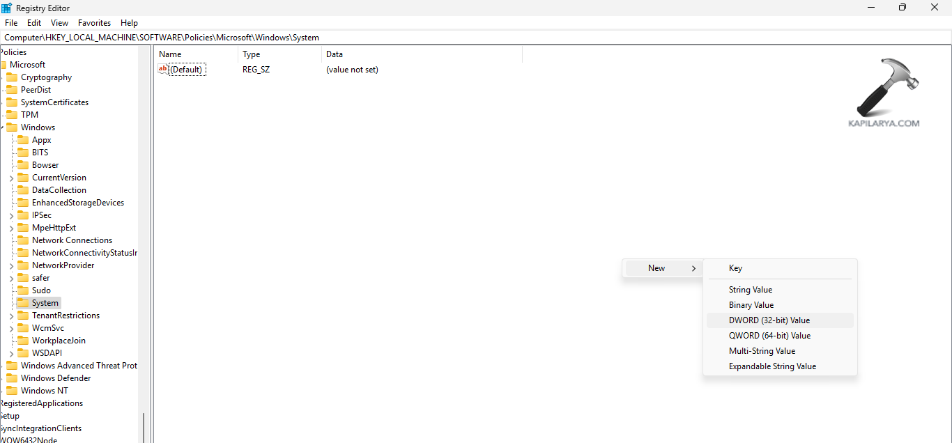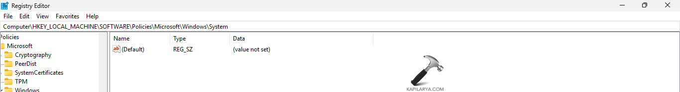 HKEY_LOCAL_MACHINESOFTWAREPoliciesMicrosoftWindowsSystem