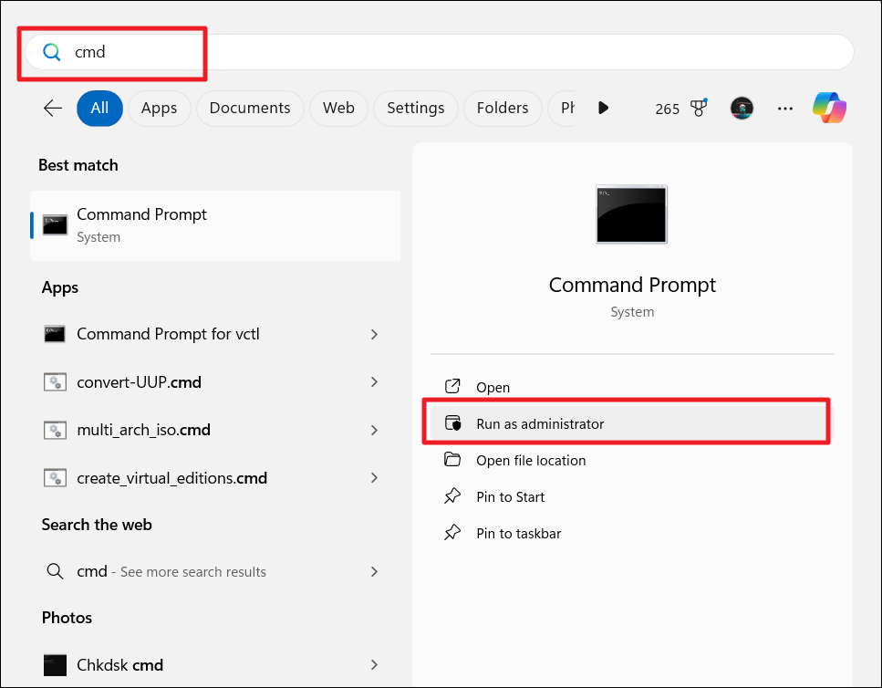 Otra causa de errores en Microsoft Store son los archivos del sistema dañados. Para reparar estos archivos, puede utilizar dos herramientas integradas: SFC y DISM.