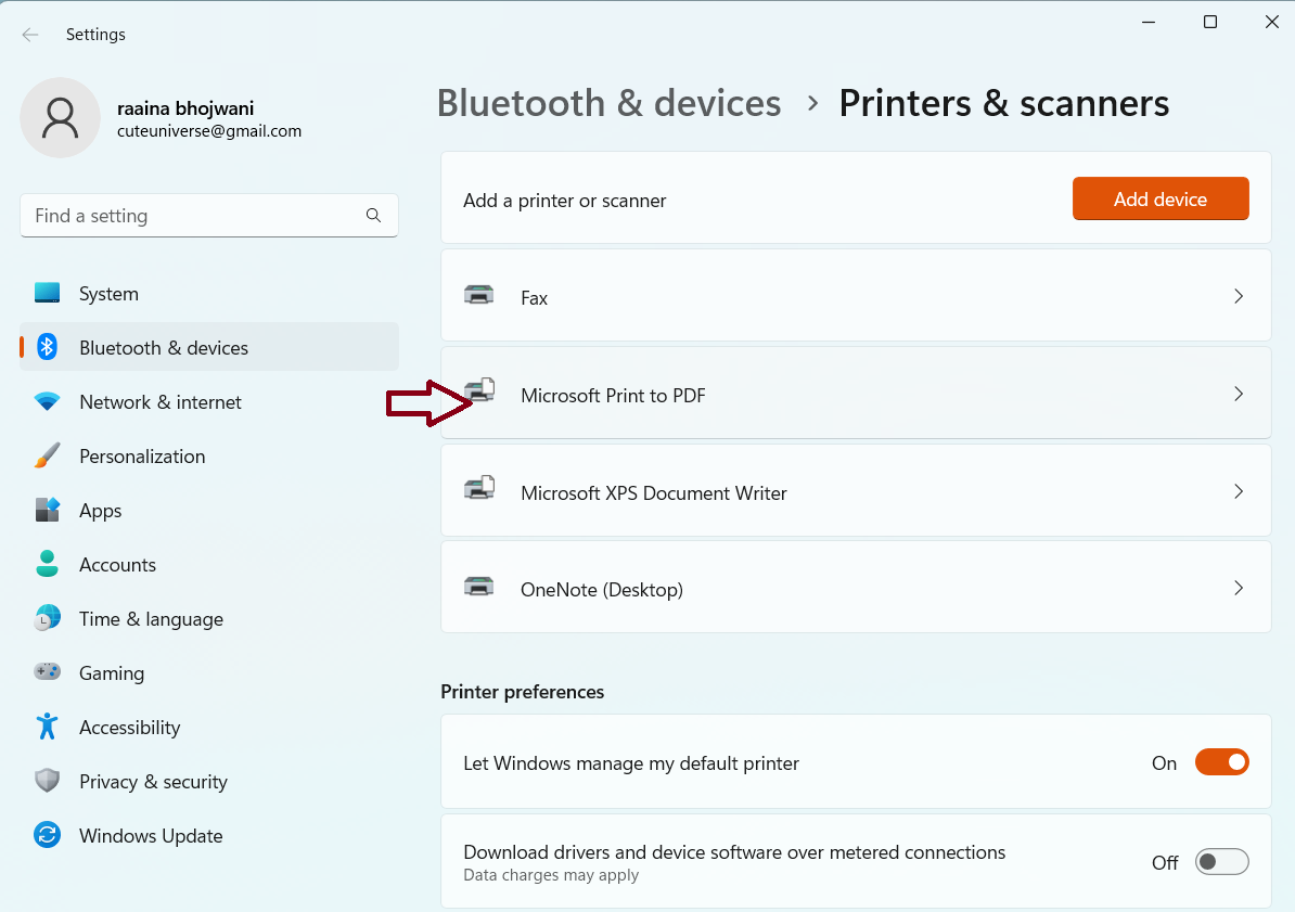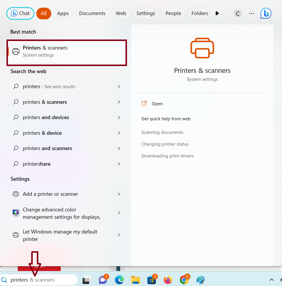 1. Abra Impresoras y escáneres buscándolos en la barra de búsqueda.