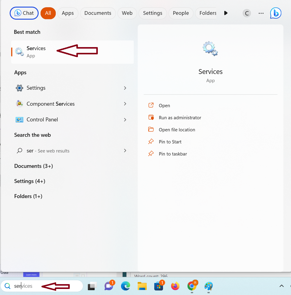 1. Abra Servicios buscándolo en el cuadro de búsqueda.