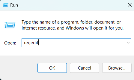 1. Abra Ejecutar presionando las teclas Win + R y escriba regedit. Haga clic en Aceptar.