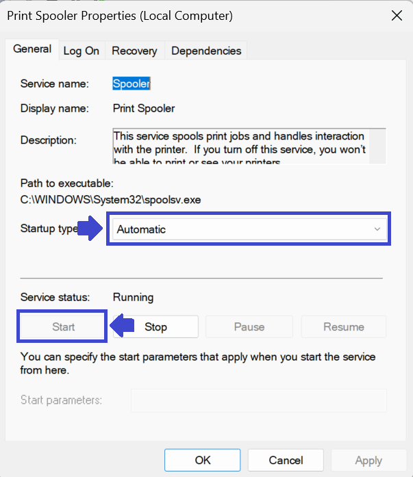 De forma predeterminada, el servicio Print Spooler se ejecuta automáticamente. Pero debes verificar para asegurarte de que todo esté configurado correctamente. Siga los pasos a continuación para reconfigurar el servicio de impresión: