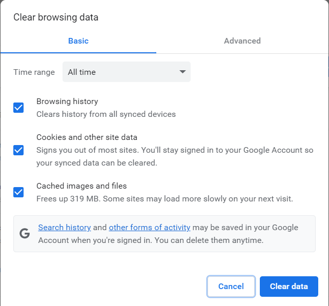Método 4: borre la memoria caché del navegador y reinicie la aplicación que genera el error.