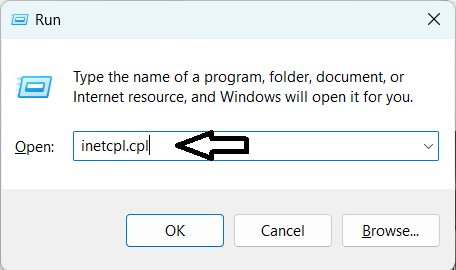 1. Abra el mensaje de ejecución presionando las teclas Win+r juntas. Escribe inetcpl.cpl y presiona “ok”.