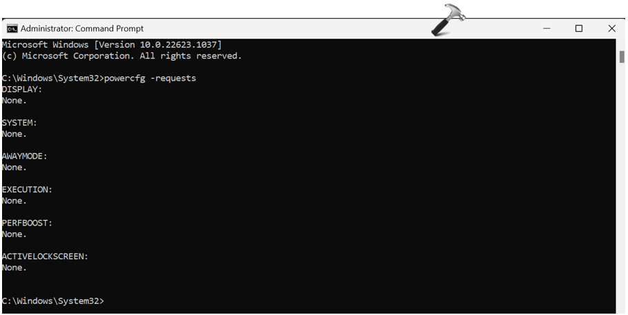 powercfg -requestsoverride <CALLER_TYPE>“<NAME>”<REQUEST>