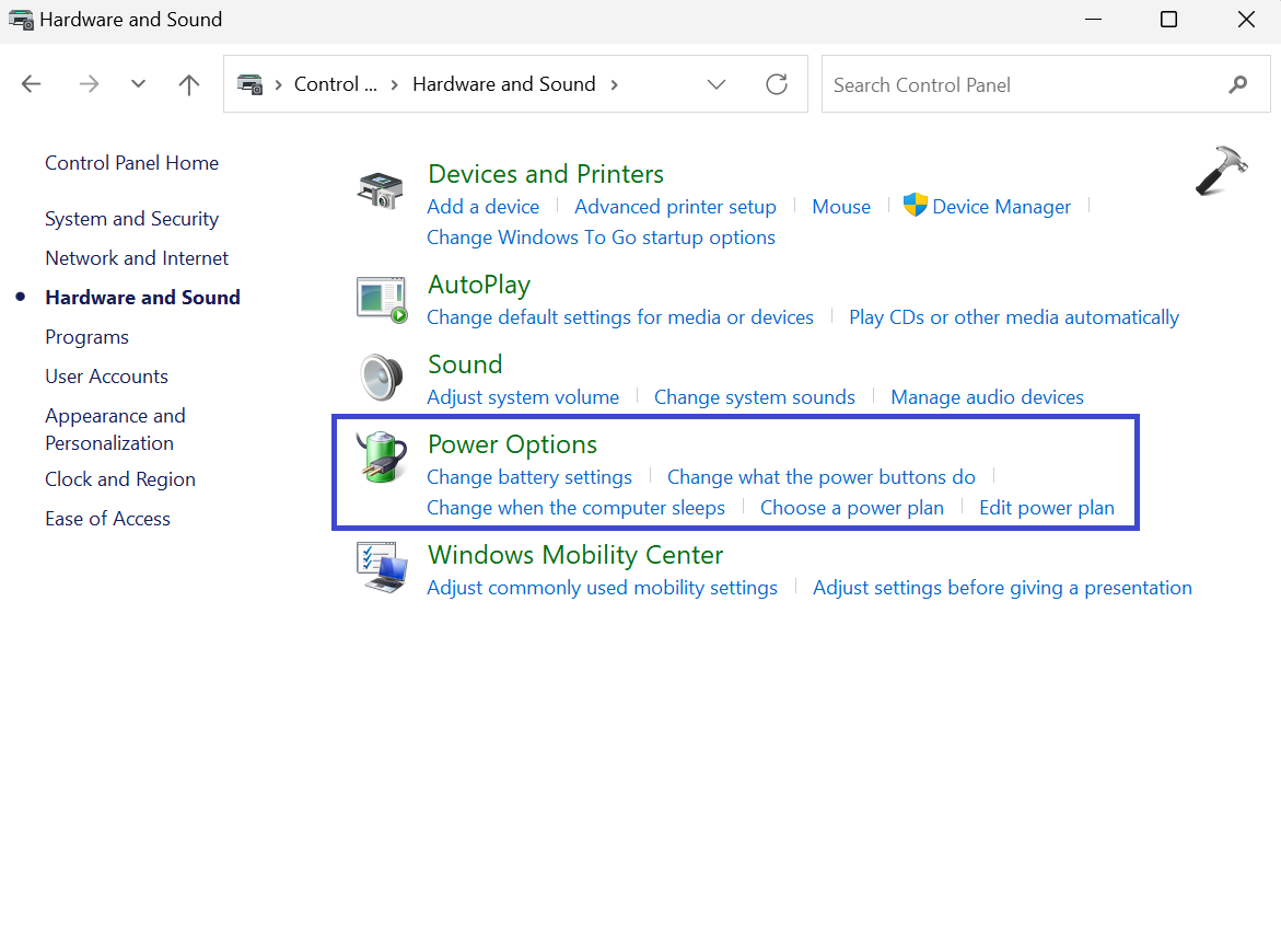 1. Abra el Panel de control. Pulsa en “Hardware y sonido”.
