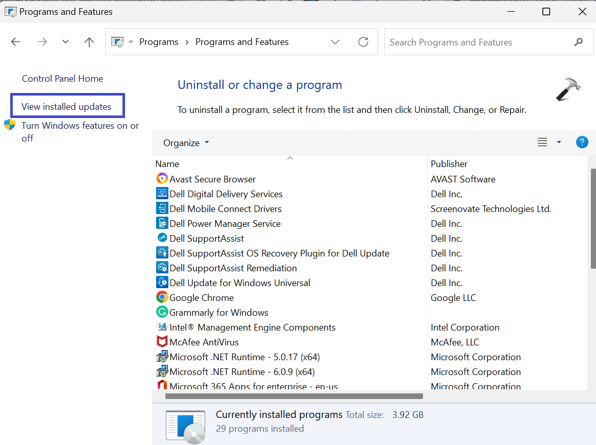 2. Ahora, seleccione "Ver actualizaciones instaladas".