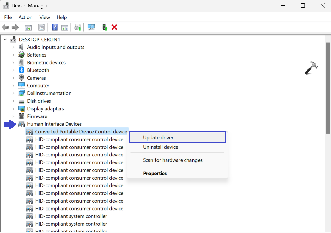3. Ampliar los dispositivos de interfaz humana. Aparecerá una lista de controladores.