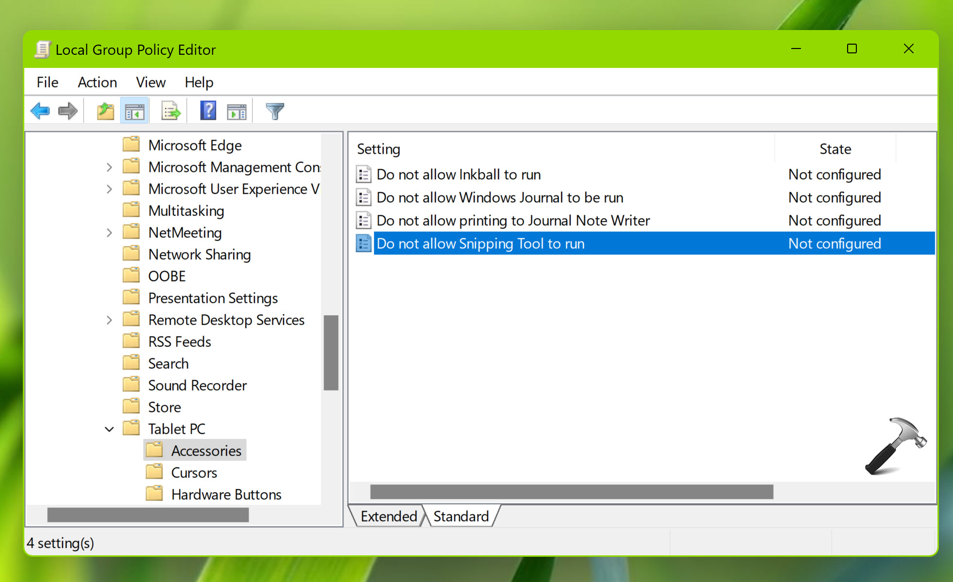 4. Una vez hecho esto, cierre el Editor de políticas de grupo y reinicie el sistema; se restaurará la herramienta de recorte.