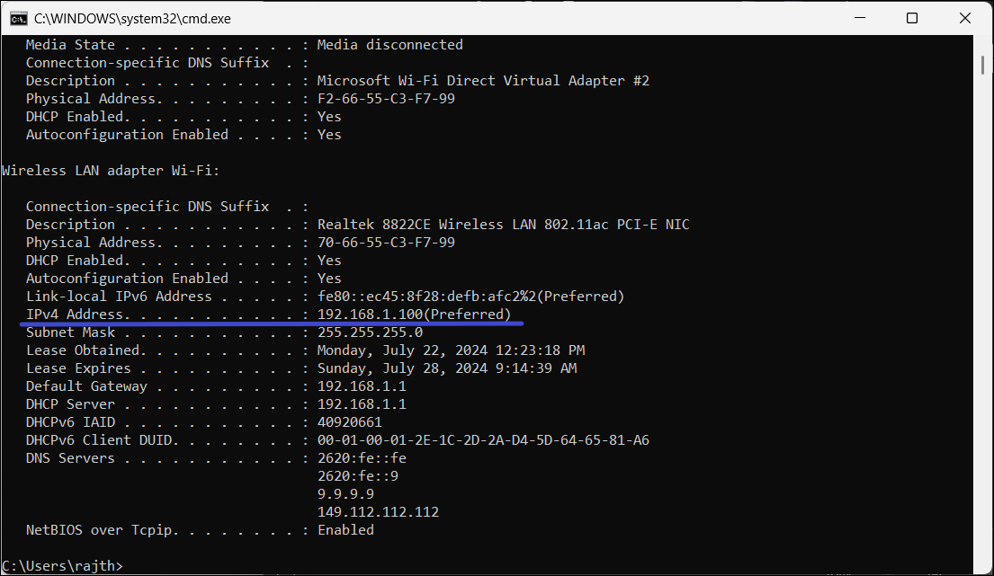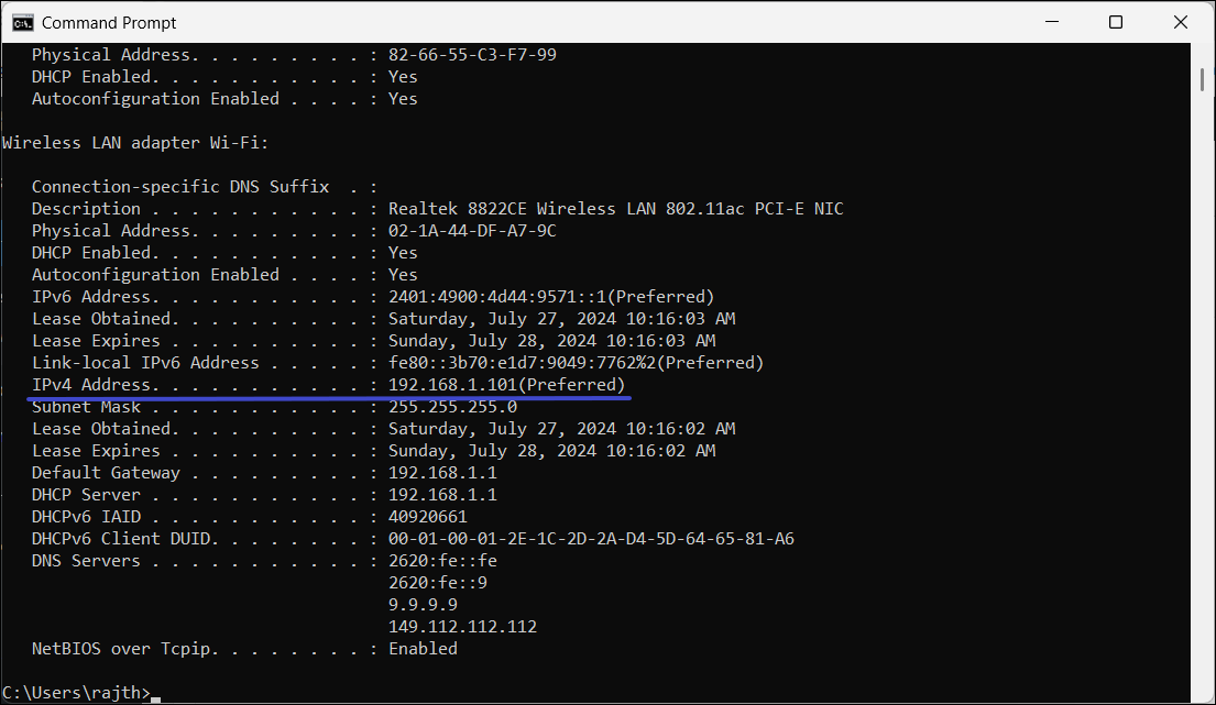 3. Ahora, copia eldirección IPv4de la información de configuración de IP.