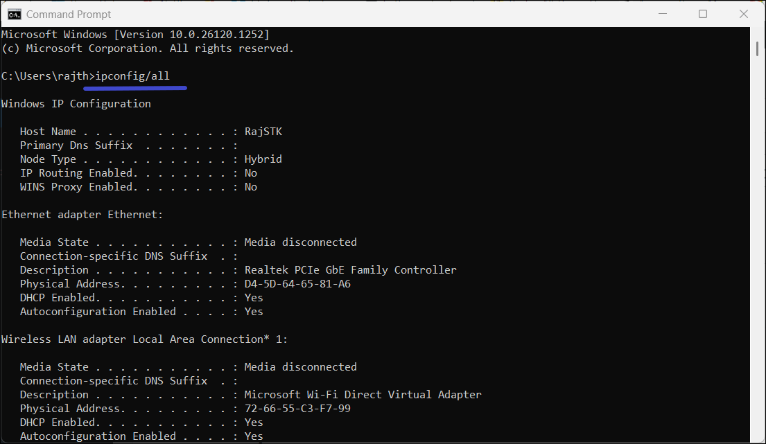 ipconfig/all