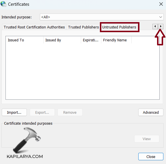 5. Haga clic en la pequeña flecha a la derecha para ver "Editores no confiables". Haga clic en esa pestaña.