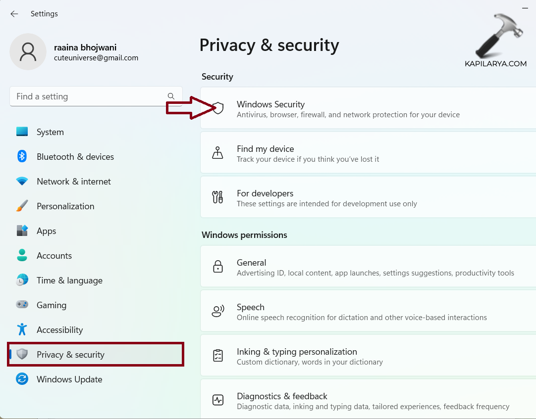 2. Haga clic en “Privacidad y seguridad” > “Seguridad de Windows”.