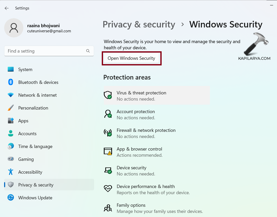 3. Haga clic en "Abrir seguridad de Windows".