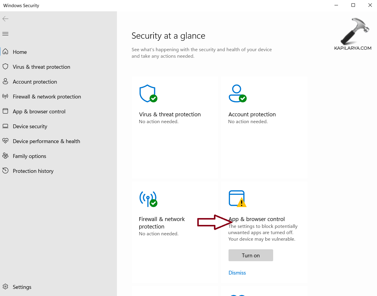 4. Haga clic en “Control de aplicaciones y navegador”.