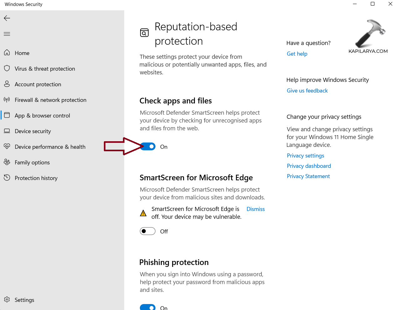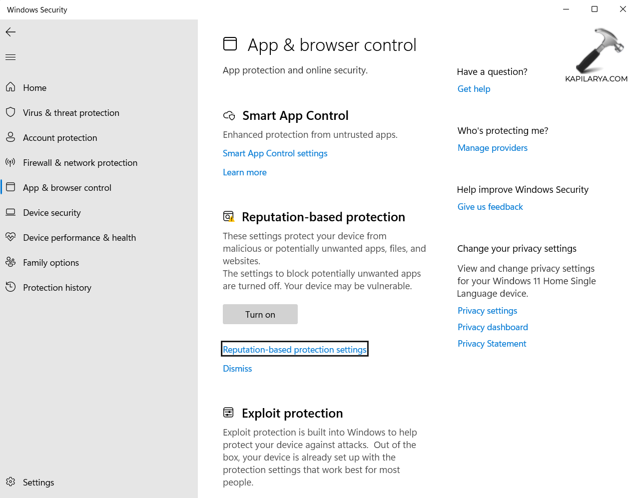 5. Luego haga clic en "Protección basada en reputación".