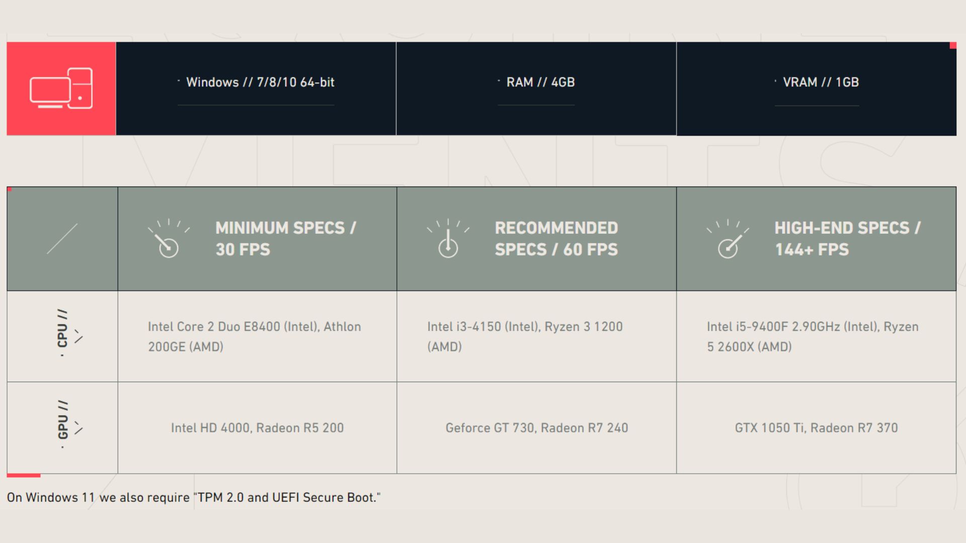 - Consulta los requisitos mínimos del sistemaproporcionado por playvalorant.com.