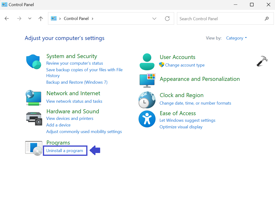 1. Abra el Panel de control y vaya a Programas.