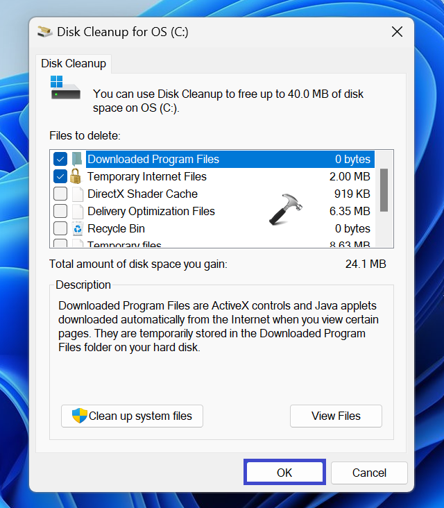 4. Ahora, seleccione Eliminar archivos para eliminar los archivos. Haga clic en Aceptar.